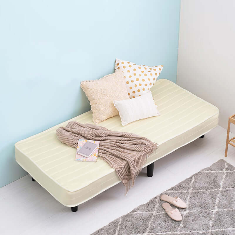 セミシングルショートサイズの耐圧分散に優れたボンネルコイルマットレス付きのすのこベッド。 シングルベッドより一回り小さいサイズ コンパクトなので一人暮らしやお子様のベッドにおすすめです。
